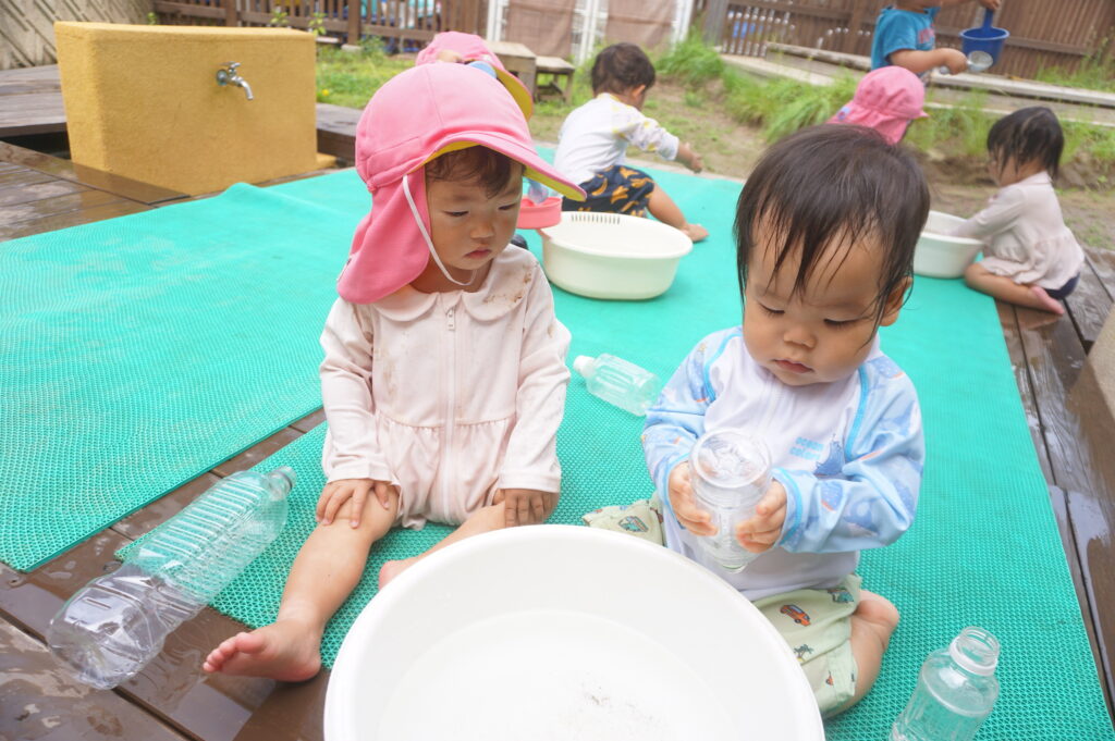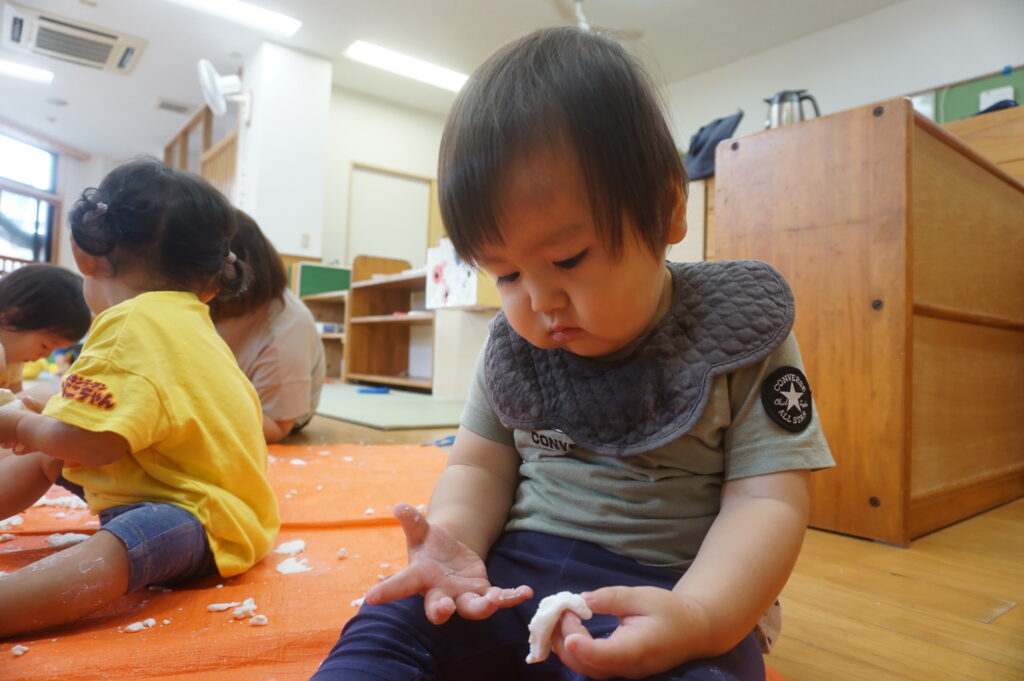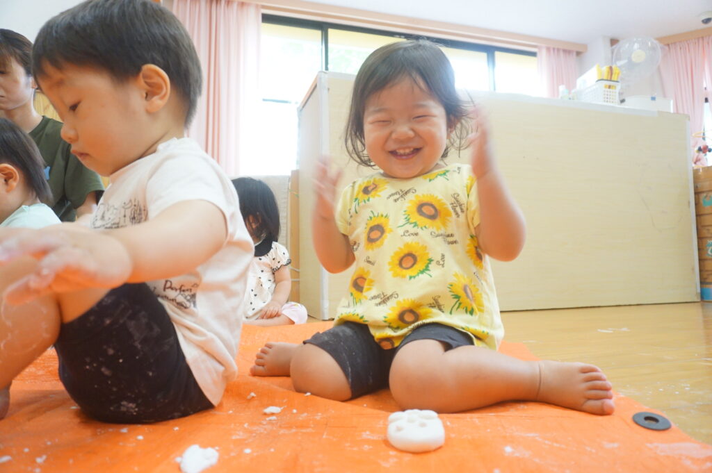 最近のおひさまのおうち(6月9日~6月20日) お知らせ 2025.06.20 雨の日の米粉粘土♪やわらかい感触を指先や手のひら、足、ほっぺた…で感じていた子どもたちでした!! お天気が良い日は早めに外へ…水(温水)遊びが楽しい季節になりました☀朝のおやつも外で食べたりしますよ~!!