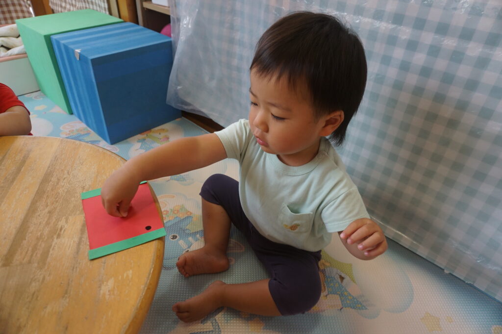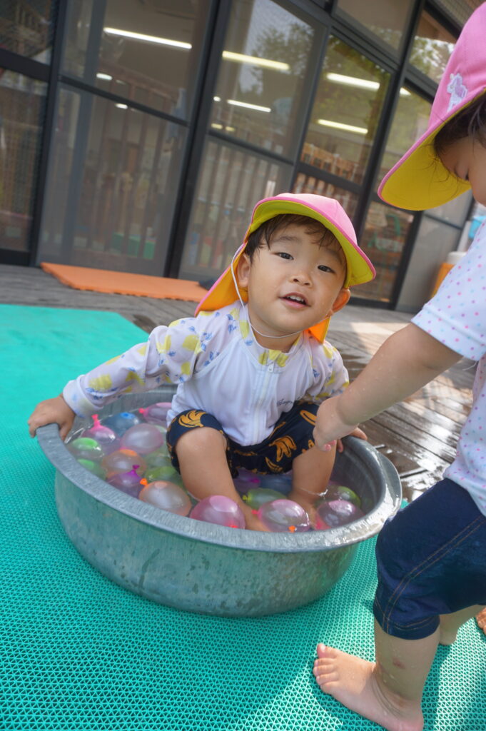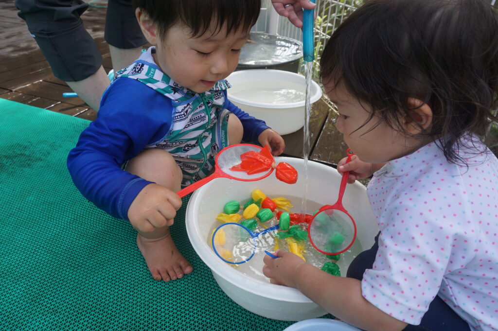 最近のおひさまのおうち(6月23日~7月4日) お知らせ 2025.07.04 晴れの日は早めに外へ…水遊びだけでなく、泥んこ遊びや水風船、金魚すくい等でも遊んでいます♡体も顔も泥んこになって夢中の子どもたちですよ~♪ 七夕のスイカの飾りをシール貼りで作りました!!いつもより小さなシールに指先を器用に動かして貼っていました☆
