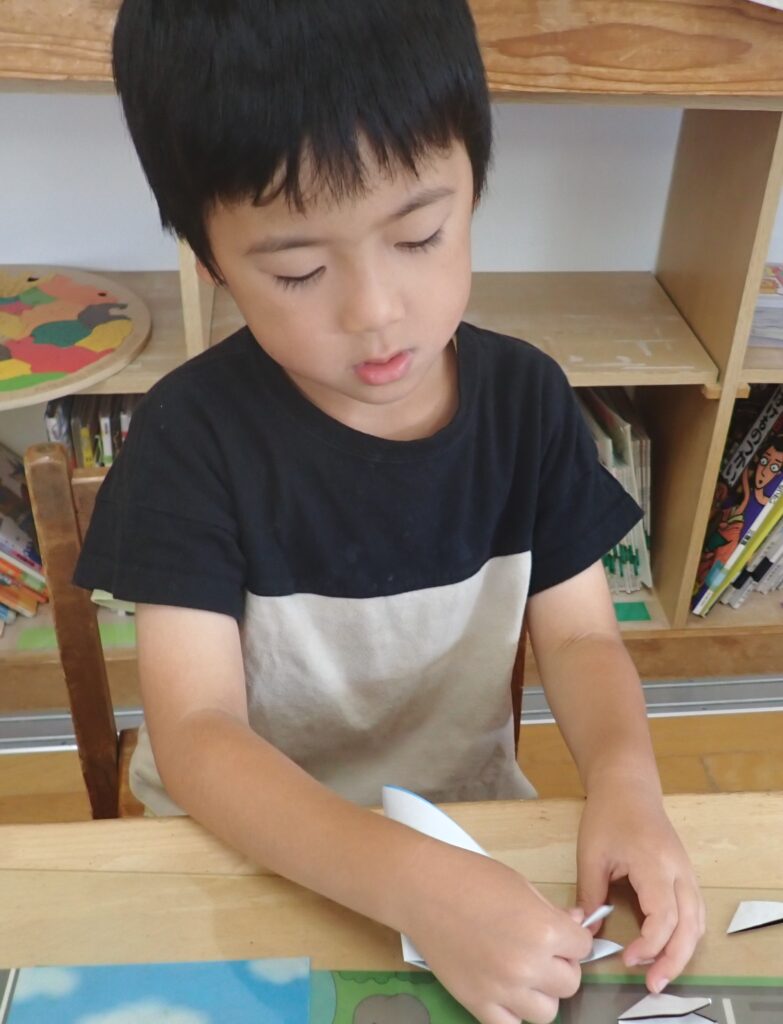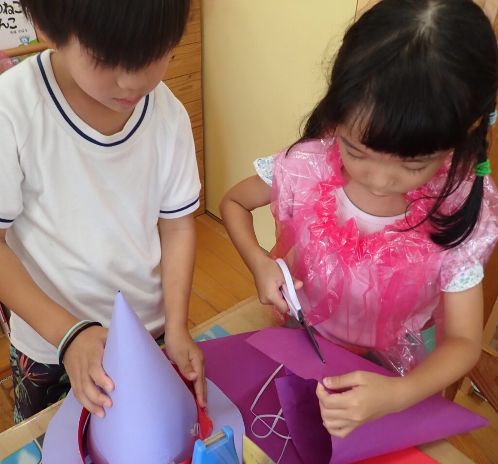 今月末のハロウィンに向けて、自分が作りたい・着たい衣装を作っています。「魔女」「お化け」「カボチャ」「黒猫」等々子どもたちそれぞれの衣装が出来上がってきていますよ。色々なアイデアもでてきて、私たちも感心したり、驚くこともあります!これからどんな衣装が完成するか楽しみです。