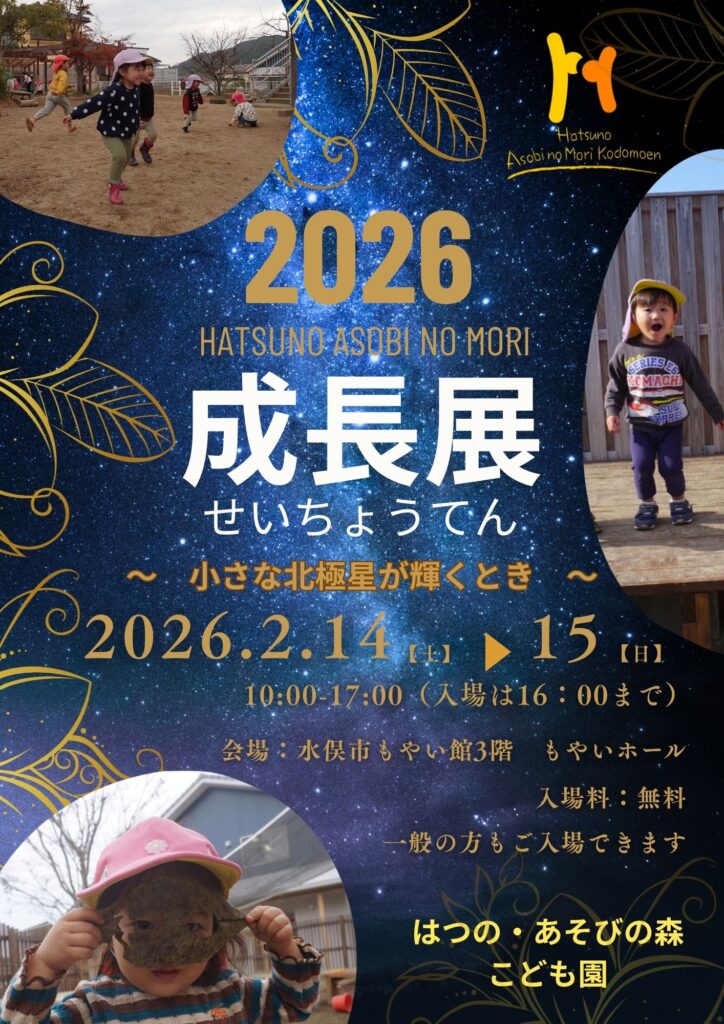 『2026成長展』のお知らせ お知らせ 2025.12.26 今年度も成長展を開催します。 子どもたちがあそびの中で見つけたこと、できるようになったこと、夢中になった瞬間を、いっしょに感じてみませんか。 どうぞお誘いあわせのうえ、お気軽にお越しください。開催期間:2026年2月14日(土)~15日(日)