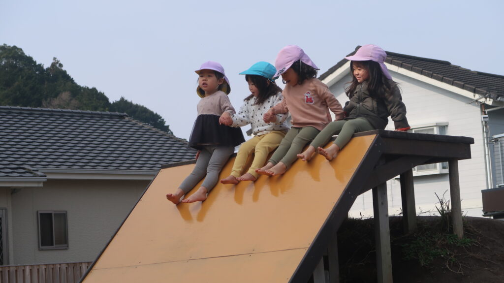 友だちと一緒に滑り台をすべったり、ままごとをしたり、鬼ごっこをしたり、巨大ブランコに挑戦したり…