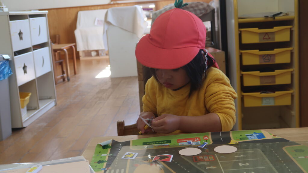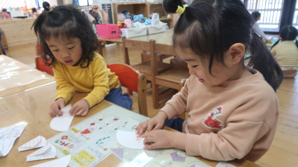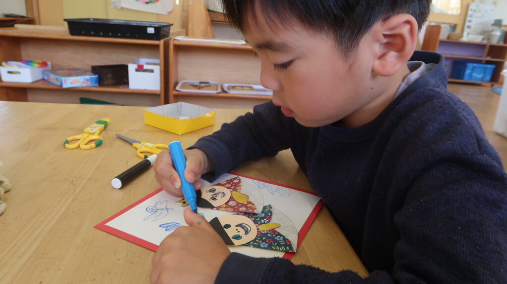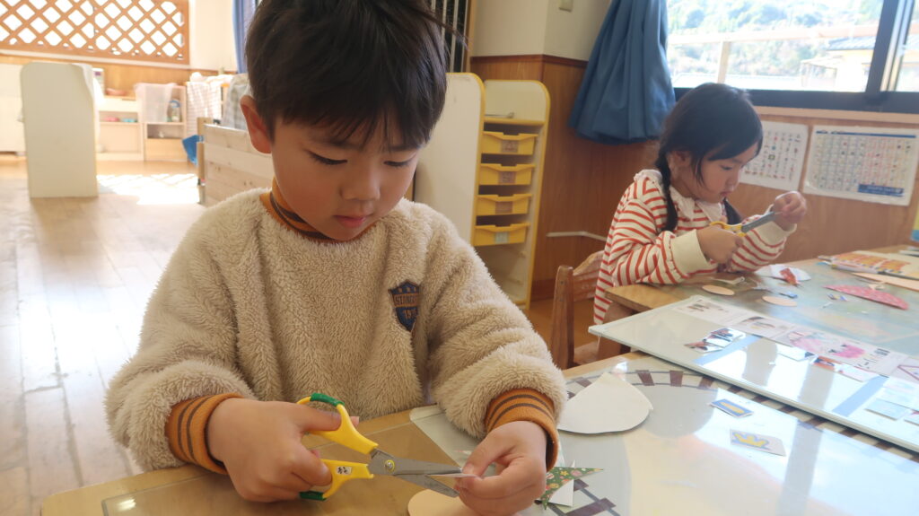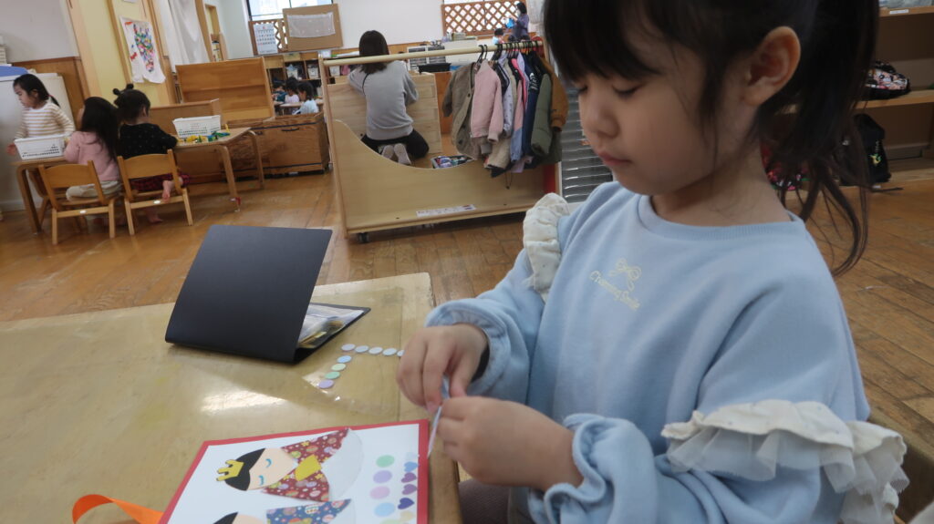 最近の2階のおうち(2/24~2/27) お知らせ 2026.02.27 最近の2階のおうちではひなまつりの製作をしています。子どもかいぎで自分で作る作品を決めた子どもたちは、見本をみながらどんな作品を作ろうかなと考えていました。 はさみを使ってお雛さまが持つ扇や頭に付ける飾りを丁寧に切る姿がありました。線に沿って上手に切っていた子どもたちでしたよ。 また、お顔や飾りを自分の作りたいものを自由に表現する様子もありました。今回の製作を通して、ひなまつりという季節の行事にも興味を持ちながら楽しめたのではないかと思います。