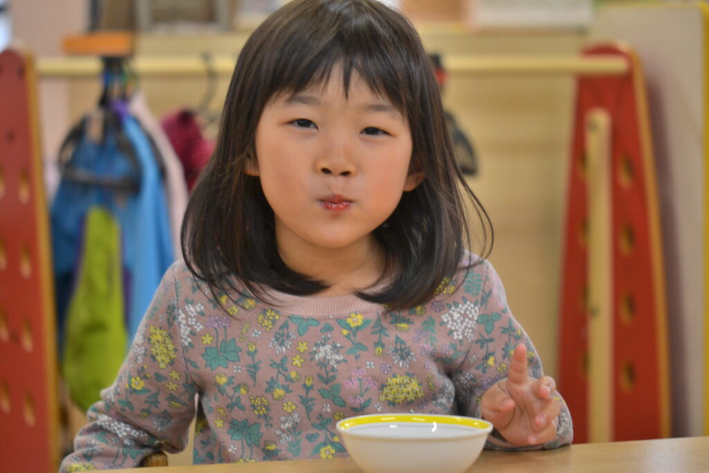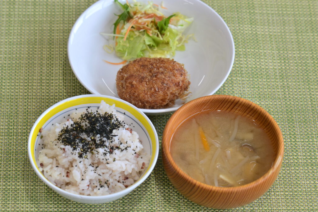 今日の昼食は、味付けした大豆ミートとサラ玉を混ぜ込んで、かつお節を衣にして揚げた、『手作りコロッケ』でした。ご飯のお供についたのは、『わかめふりかけ』。乾燥わかめをミルで細かく砕き、みりん、しょうゆを少々入れて味をつけています。園のふりかけは、どれも手作りで栄養たっぷりですよ~☺3時のおやつは、『甘酒ブレッド』。自家製の甘酒で作ります。砂糖不使用ながら、ふわふわで優しい甘さの米粉パンです。手作りのいちごジャムをつけて頂きました🍓
