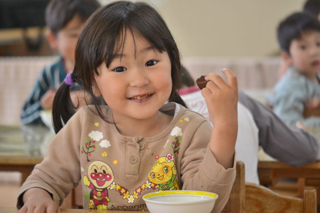 今日の昼食は、『ロールキャベツ』でした。鶏ミンチに高野豆腐、サラ玉などを混ぜたたねを、柔らかい春キャベツで巻いて、昆布だしにホールトマトをいれたスープで煮込みました。うま味のたっぷり溶けだしたスープごといただきましたよ🥬噛み切る力がまだ弱い1~2歳児さんは肉団子にして出しています。3時のおやつは、『ココアケーキ』でした。米粉で作るふわふわケーキに、豆腐にココア、ココナッツオイル、てんさい糖シロップを混ぜたチョコ味の豆腐ガナッシュをつけて食べました。お口の周りにクリームをつけながらも美味しそうに食べてくれましたよ💓
