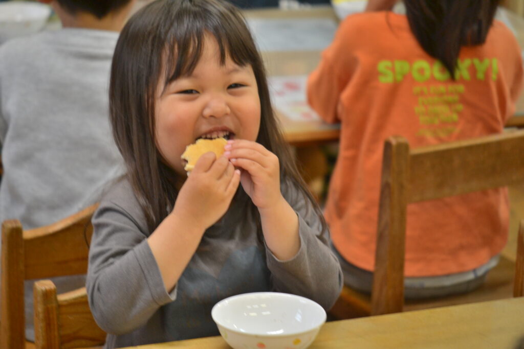 今日の昼食は『野菜のがんもどき』に、サラダは春キャベツ、人参、サラ玉、スナップえんどうが入っていて、「サラ玉」と「スナップえんどう」が津奈木の❝わらく農園❞さんの野菜でした🥬手作りの人参ドレッシングをかけて食べましたよ🥕3時のおやつは、『どら焼き』でした。園のどら焼きは米粉も使わず、洗って浸水しておいた六分づき米で作ります。豆乳やてんさい糖シロップなどの材料と一緒にミキサーにかけて細かく砕いた生地に、ベーキングパウダーを混ぜ込み、ホットプレートで一枚一枚焼きます。粗熱がさめたころ自家製のあんこをそれぞれお好みで挟んで出来上がりです✨今日もみんな美味しそうに食べてくれました☺