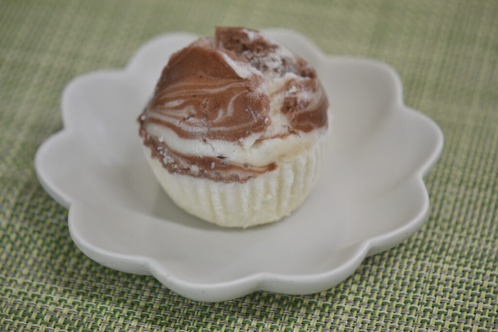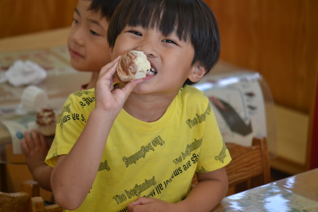 今日の昼食は、『野菜のがんもどき』でした。油抜きして滑らかにつぶした厚揚げにしょうゆ、みりんで味付けした干し椎茸や人参、玉ねぎ、きくらげなどの具をたっぷり入れて成形し、なたね油で揚げています。3時のおやつは、『マーブル蒸しパン』でした。米粉や豆乳、なたね油でつくるいつもの蒸しパン生地に、ココアを混ぜた生地を少量ずつ入れて、軽く混ぜると綺麗なマーブル模様に❣子どもたちも「チョコの味がする~❢」と言って喜んで食べてくれました😊