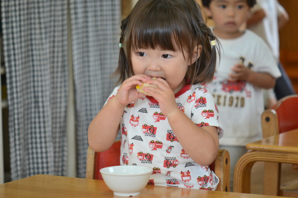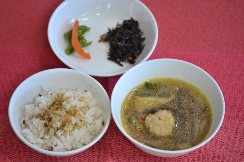 今日の昼食は『肉団子スープ』でした。鶏ミンチで作っている肉団子には、高野豆腐を混ぜています。良質なたんぱく質が豊富で、ボリュームと栄養価をあげてくれる一石二鳥の食材です✨野菜や春雨もたっぷり入れました。さっぱり食べられるよう、しょうゆとみりんで和風味に仕上げています。3時のおやつは『とうもろこしご飯』でした。吉田さんのとっても甘いスイートコーンを使用しています🌽💕付け合わせのきゅうりも、提供ぎりぎりまで冷やしておいたので、味もしみて冷たくて美味しかったですよ~🥒✨子どもたちもカリカリと美味しそうに食べていました。
