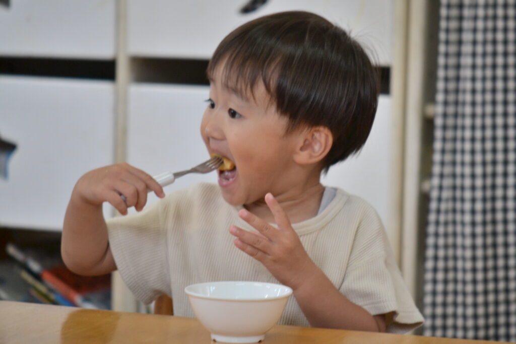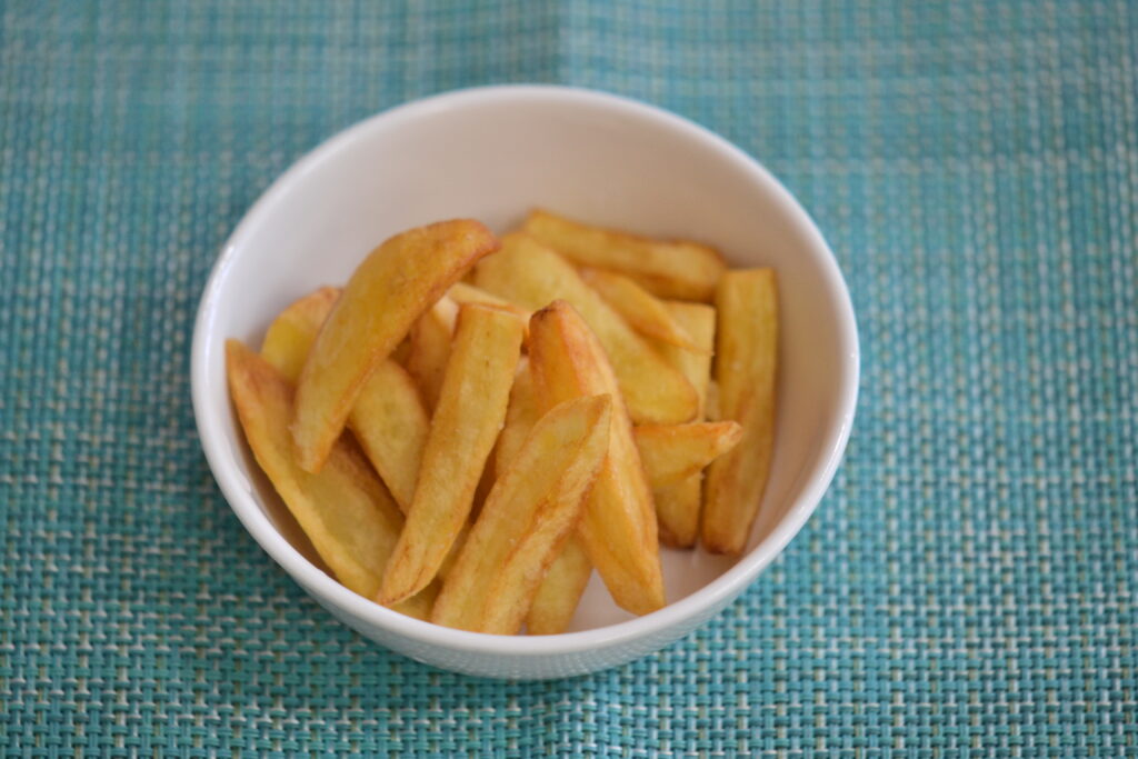 今日の昼食は『野菜のがんもどき』でした。なめらかにつぶした豆腐に、人参・玉ネギ・きくらげ・生姜などを炒めた具を混ぜて揚げています。みそをほんの少し入れることで旨味が増し、ご飯によく合う味付けになります♪副菜の『人参のホットサラダ』も人気のおかずです。美味しく作るポイントは火加減🔥!!人参に火を通しすぎると食感が悪く、味もぼやけるので、千切りした人参はサッ!と火を通してタレと和えるのがおすすめです。3時のおやつは『フライドポテト』でした。子どもたちも大好きなおやつです。今日もおかわりにたくさん来てくれましたよ😋✨