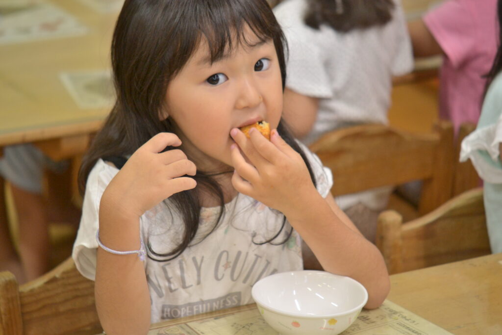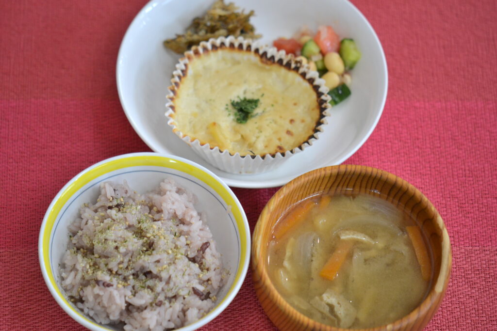 今日の昼食は、『塩麴グラタン』でした。園の塩麴グラタンは、自家製の塩麴を使って、ホワイトソースを仕込むところから始まります。米粉をなたね油で軽く炒め、にんにく少々で風味をつけ、豆乳を少しずつ加え最後に塩麴で味を整えます。今日は炒めたじゃが芋、玉ねぎ、とうもろこしに、トロトロのホワイトソースをかけて、こんがり焼き上げました❣季節によって、具材も変わりますよ😊3時のおやつは、『きな粉揚げパン』でした。特に人気のおやつで、今日は揚げて間もないカリっとした揚げパンを「今日のはまだあったかいね~」「カリカリだよ~」とみんなニコニコで食べていました(^^♪