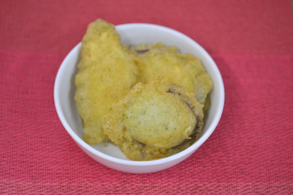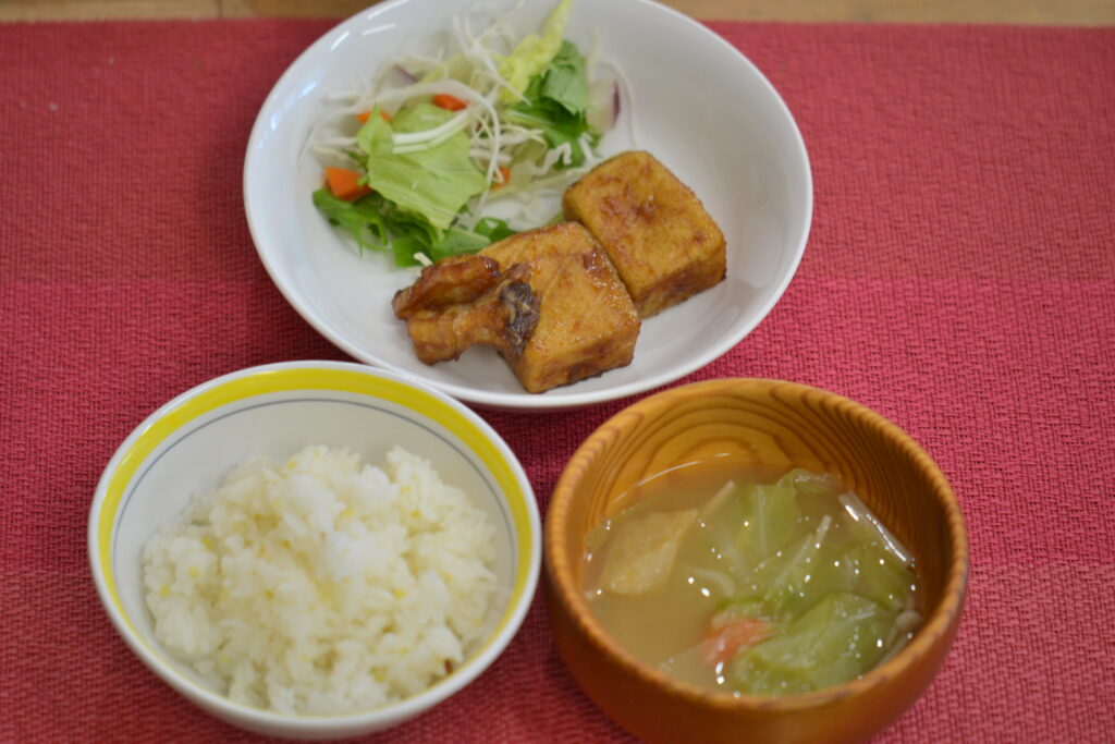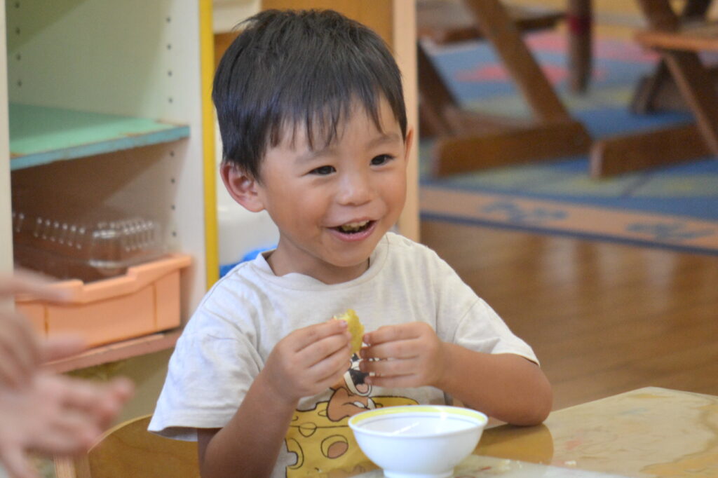 今日の昼食は『高野豆腐の照り焼き』でした。軟く戻した高野豆腐の片栗粉をまぶして揚げ、しょうゆとみりんの甘辛タレを絡めています。今日はエリンギもあったので、一緒に揚げて添えました🍄✨子どもたちはどちらも大好きで、おかわりもたくさん食べてくれますよ😊💗3時のおやつは『さつま芋の磯辺揚げ』でした。米粉と豆乳で作った衣がカリカリ♪サクサク♪で、より美味しく感じます。子どもたちも美味しそうに食べていました😋✨