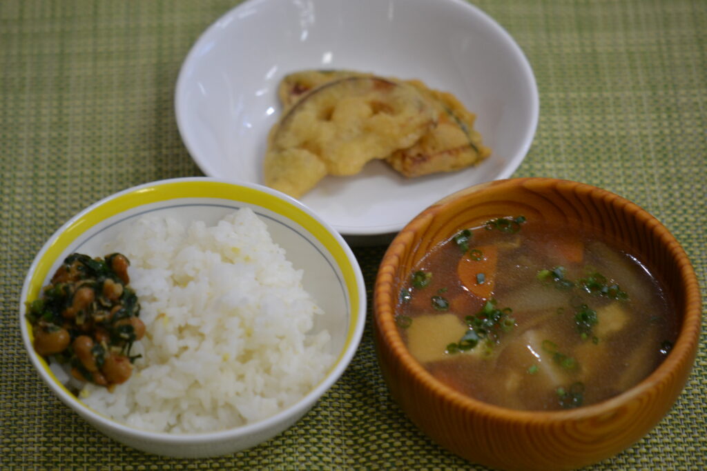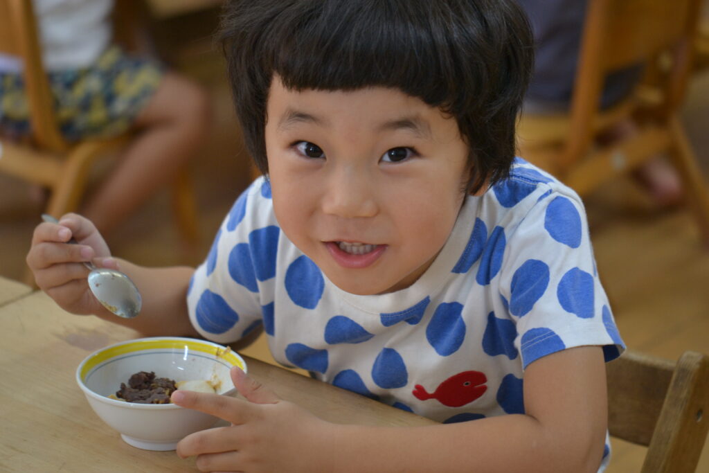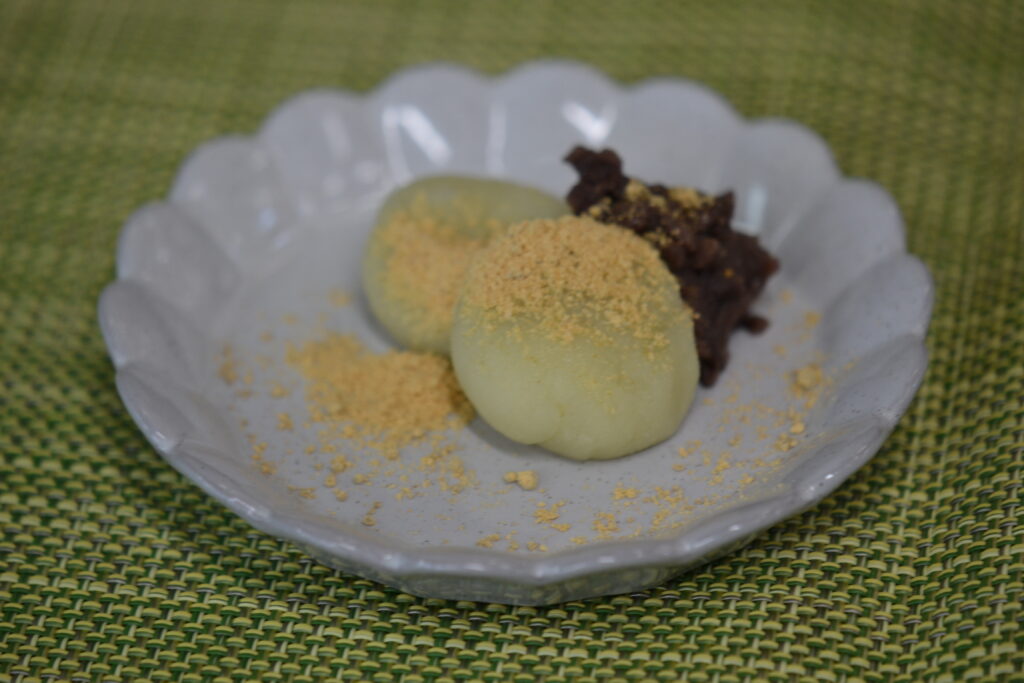 今日の昼食は、『けんちん汁』でした。今日のけんちん汁には、手作りの豆腐が入りました❣里芋は、『こしこば菜園』さんの里芋を使いました😊干し椎茸、人参、こんにゃくなどの具材と一緒に、昆布とうるめ節でとっただしで煮ると、野菜のうま味もたっぷりのけんちん汁が出来ましたよ~❢3時のおやつは、十五夜にちなんで、『お月見団子』でした。白いお団子と、かぼちゃで色を付けた黄色いお団子一つをお月さまに見立てて、トッピングはきな粉とあんこをつけて食べました。1階の3~5歳児さんは、自分たちのおつきみ団子作りに挑戦しましたよ~❢みんなとっても上手に丸めていました♥お団子をまだ食べれない1歳児さんは、さつま芋に片栗粉を加えて練った、さつま芋団子にトッピングをのせて食べました。