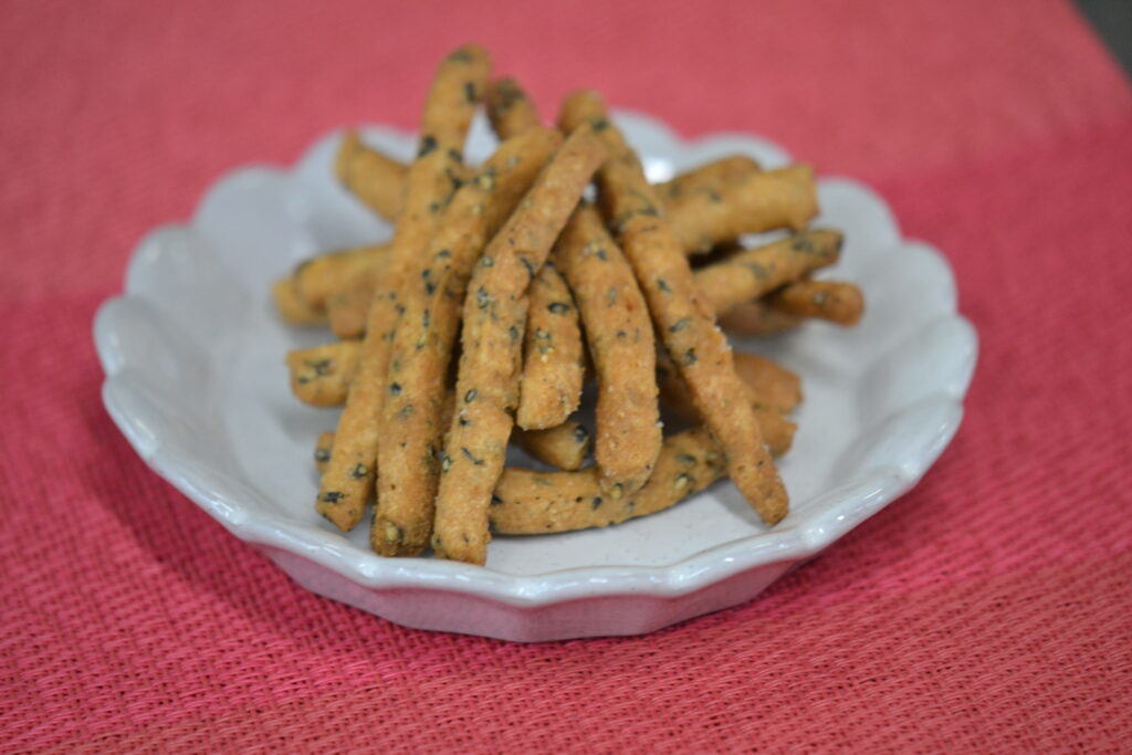 などの具材をたっぷり入れて、しょうゆ、みりんで味を整え、最後にれんこんのすりおろしを加えて出来上がりです。れんこんのでんぷん質でトロっととろみのがつき、食べると体の中から温めてくれるので、これからの季節にピッタリですよ💓3時のおやつは『ごまかりんとう』でした。人気の「黒糖かりんとう」の❝ごまバージョン❞で、こちらは仕上げに塩をふって甘じょっぱく仕上げます。噛めば噛むほどに、ごまの風味と米粉特有の旨味が感じられるおやつです😊硬さがあるので1~2歳児さんはサクサク食べられる、『ココナッツサブレ』を焼いて出しました。