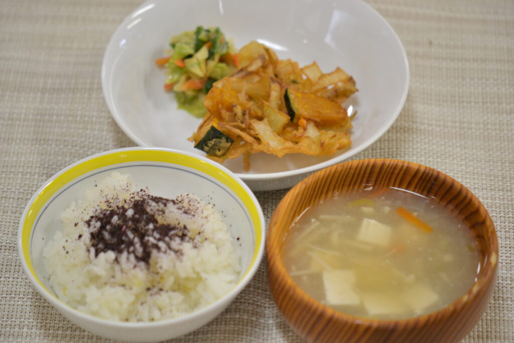 今日のおすすめメニューは、『豆腐の和風スープ』です❣昆布でとっただしに、玉ねぎや長ネギ、人参、えのきなどの野菜を入れ、豆腐をさいの目に切って加えたら、自家製の玉ねぎ麹で味を整えます。仕上げに水溶き片栗粉でトロっととろみをつけたら出来上がり💓少し肌寒いこの季節にピッタリのスープでしたよ😊今日は豆腐も手作りのものを使いました🌟そして…今日はハロウィンにちなんで給食室でもちょっぴり仮装👻子どもたちがいち早く見つけてとっても喜んでくれましたよ🥰自分たちも楽しみながら、日々美味しい給食作りに励んでいます❣