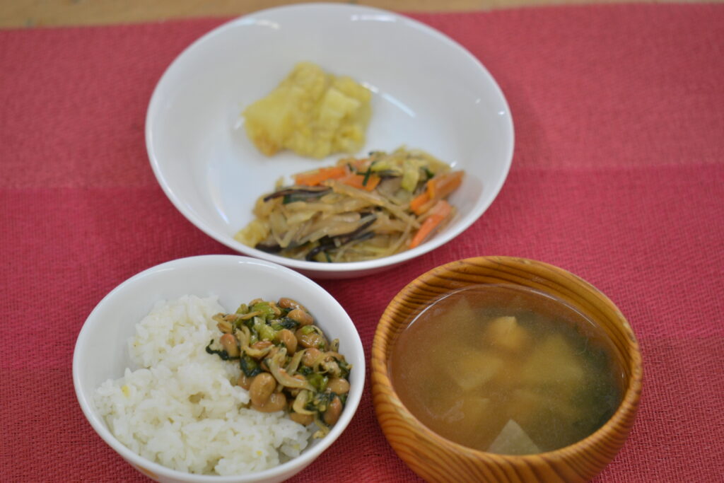 今日の昼食は『野菜たっぷり五目春雨』でした。その名の通り、人参・玉ねぎ・干し椎茸・きくらげ・もやし・など…野菜がたっぷり入っています🥕✨しょうゆとみりんで味付けした和風味の五目春雨です。3時のおやつは『白玉ぜんざい』でした。園では、咀嚼・嚥下機能の観点から、年齢に応じたお団子を提供しています🌟(以上児さんには、白玉粉と上新粉を混ぜて作ったお団子。2歳児さんには、歯切れがいいように、白玉粉と上新粉に豆腐を加えて作ったお団子。1歳児さんにはさつま芋を潰して作った芋だんご。)園のぜんざいは、甘さを極限まで控えています。そのため、味を薄く感じない様、小豆や自家製あんこをベースにしながら、コクのある黒砂糖を加えたり、対比効果を利用して、塩を加えて味を引き締めたりと美味しくなるように工夫しています🌷✨