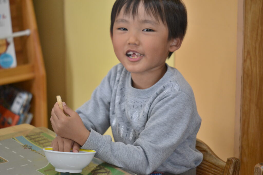 今日の昼食は、『魚のケチャップあんかけ』でした❣あんかけに使うケチャップは、良質なトマトジュースやすりおろした玉ねぎ、にんにくなどを煮詰めて作る自家製ケチャップです🍅園ではピザソースやポークビーンズなど、色々なメニューに使われていますよ🌟今日のお魚は、「サワラ」🐟🐟。下味をつけてカラッと揚げたお魚に、玉ねぎ、人参が入った酸味のきいたケチャップあんをたっぷりかけていただきましたよ♡3時のおやつは、久しぶりの登場の、『ココナッツサブレ』でした。今日は、新たに、「ごま」を入れて焼いてみました。いつものココナッツの香りにごまの風味が加わって、とってもいい香りのするサブレになりました。みんないい音をさせてよく噛んで食べていました😊