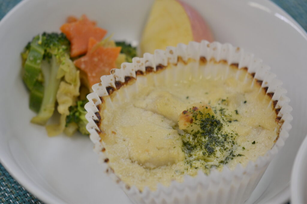 今日のおすすめは、『塩麴グラタン』です❣おすすめポイントは、「こしこば菜園」さんのトロっととろける美味しさの里芋を使っていること、そして自家製の塩麴を使った「塩麴ホワイトソース」❢バターや小麦粉で作る一般的なホワイトソースとはまた違い、なたね油に米粉、豆乳などヘルシーで体にやさしい食材で作ります。あっさりながら、塩麴のコクも感じられるグラタンですよ🌟3時のおやつは、初登場の『ミルクレープ』でした😊クリスマスも少し意識して、いつものクレープ生地に「豆乳ガナッシュ」をサンドする工程を繰り返し…ケーキっぽく💕子どもたちも👀をキラキラさせながら、「めっちゃ美味しい❣❣」「今までの中で一番❣」と、とっても喜んでくれました😊