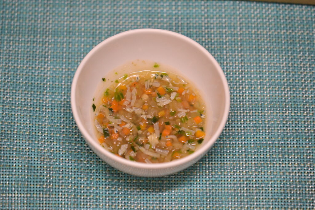 今日の昼食はチキン南蛮風でした✨お肉ではなく、大豆のから揚げ(大豆たんぱくを凝縮したもの)を使用しています!!お好みでタルタルソースをかけてたべました。そして、タルタルソースも手作り♪卵不使用で手作りした、豆乳マヨネーズに、今日は玉ねぎではなく、白菜を刻んで入れてみました!!シャキッとした食感が良く、玉ねぎの様な辛味もないため、玉ねぎの辛味が苦手な人におすすめです😊✨子どもたちも良く食べていましたよ💕3時のおやつは、初登場のそぼろおにぎりでした。ひき肉ではなく、高野豆腐をそぼろ状にし、しょうゆとみりんで味をつけています。炒めた野菜と一緒にご飯に混ぜたら完成🍙✨みんな美味しそうに食べていました。