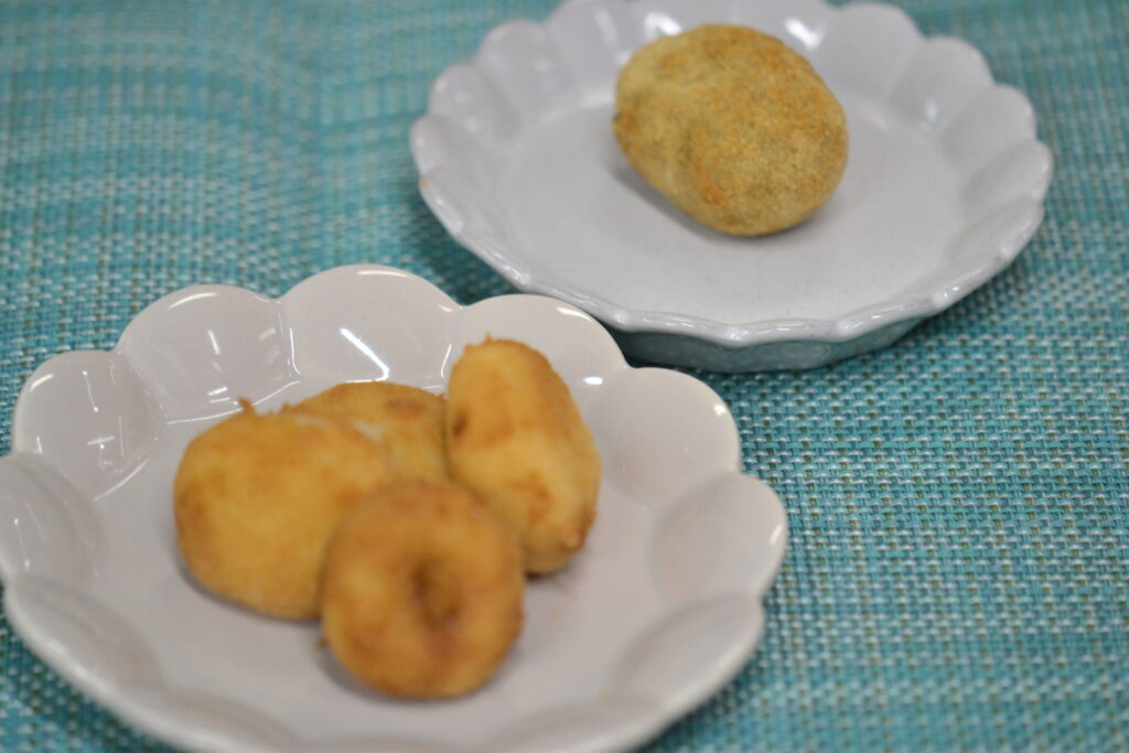 3時のおやつは、人気の『あべかわ団子』❣今日から初めて1階のお部屋で給食を食べる子たちも、ワイワイ楽しそうに食べていましたよ💕1歳児さんは軟らかく噛みやすい芋だんごにきな粉をまぶして食べました🌟