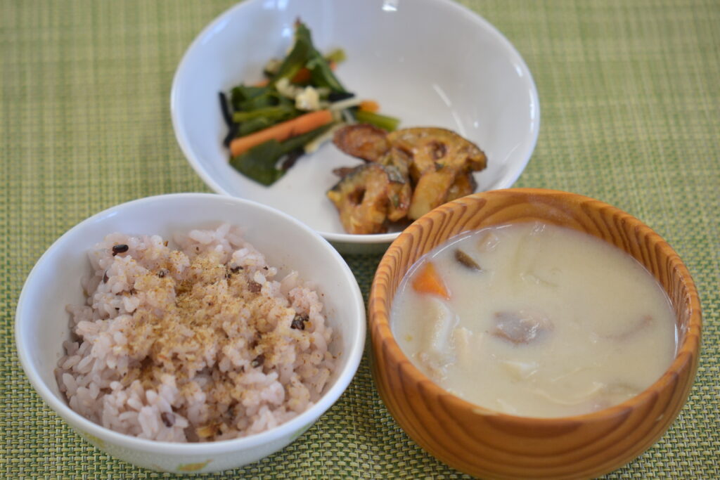 今日のおすすめメニューは、『根菜の油淋鶏風』です❣根菜はごぼう、れんこんを使い、今日はエリンギも加えました。片栗粉をまぶして揚げ、にんにく、しょうが、長ネギなどの香味野菜で風味をつけた甘酢を絡めて出来上がりです。シャキシャキ、コリコリと、色々な食感が楽しめるメニューでした😊3時のおやつは、人気の『米粉のクレープ』❣今日のトッピングは、豆腐で作る滑らかなガナッシュ(チョコクリーム)に、自家製のりんごジャムでした🍎🍎お好みで、好きな方をはさんで食べましたよ💕