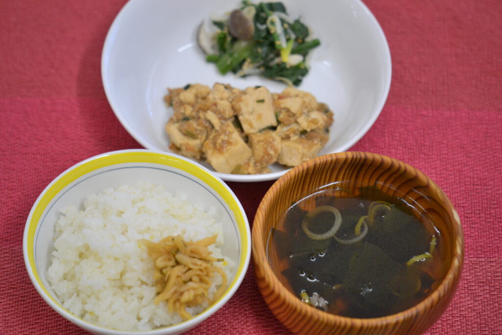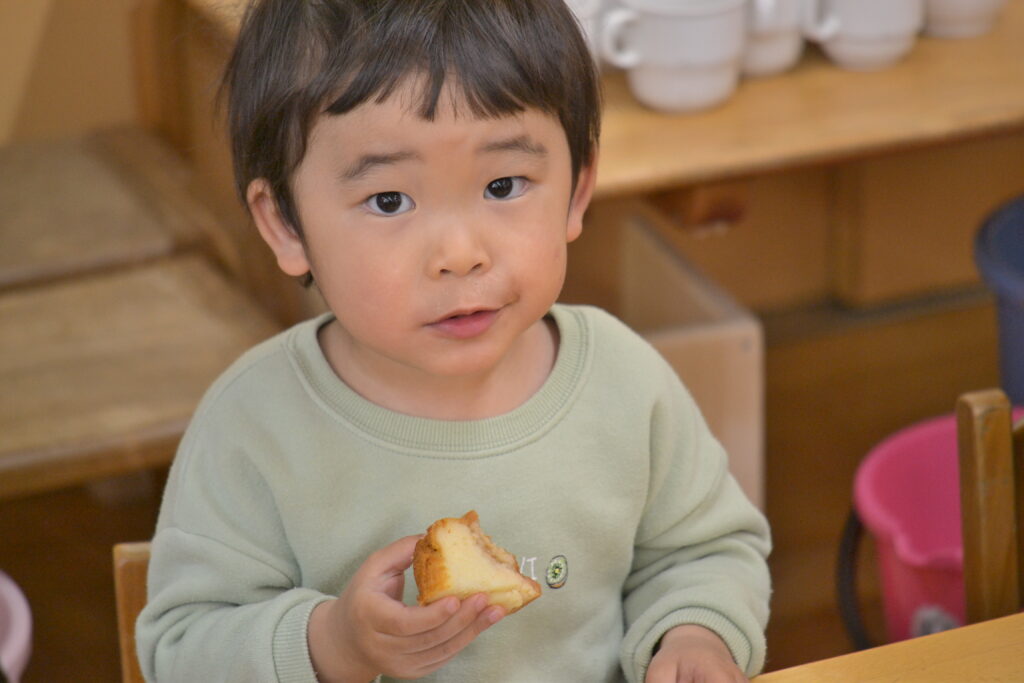 今日の昼食は、『麻婆豆腐』でした。園の麻婆豆腐は大豆が原料の「大豆ミート」を使います🌟ごま油ににんにく、しょうがで香りをだしてひき肉タイプのだいずミート、玉ねぎ、人参にニラを炒めて木綿豆腐と合わせ、二種類のみそとしょうゆ、みりんで味を整えます。辛味は入れず、小さいクラスから年長さんクラスまで、美味しく食べられるように仕上げていますよ😊にんにく、しょうがの風味と2種のみそが合わさって、コク深い味の麻婆豆腐です。3時のおやつは『甘酒ブレッド』でした。砂糖は使わず、手作りの甘酒を使ってしっとり焼き上げます。甘さ控えめですが米粉特有の、噛めば噛むほどにうま味が感じられるパンで、「耳」が美味しいんだよ~という子ももちらほら💓自家製のりんごジャムをたっぷりつけて食べました🌞