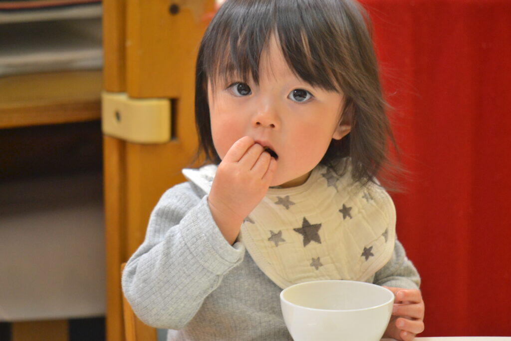 にんにく、しょうがの風味が食欲をそそります🥰3時のおやつは、園の定番生米おやつ、『人参マフィン』でした❣浸水した生のお米でできるふんわりマフィンです😊米粉のおやつと違うところは…ズバリお米の旨味をそのまま味わえるところ❣ご飯をよく噛むと到達するあのふんわりとした旨味を体感できますよ💓子どもたちにも人気のおやつです👍