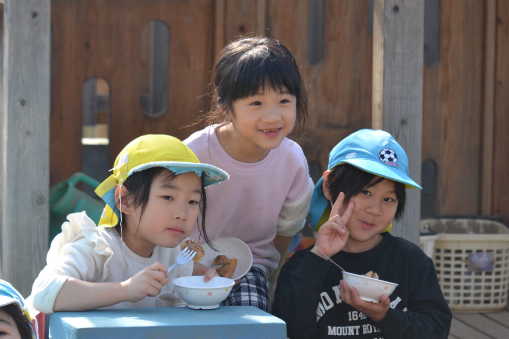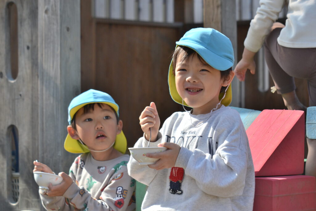 今日の3時のおやつは年長Tくん、Aちゃん、Kちゃんのリクエストで『ミルクレープ』でした。米粉・豆乳・ドライイーストなどで生地を作り、1枚1枚焼いています。豆腐で作ったチョコクリームを間に挟んで作った人気おやつです✨今日は天気も良かったので、年長さんはお外で食べていました。ちょっと特別感もあり、みんな嬉しそうに食べていましたよ💗✨