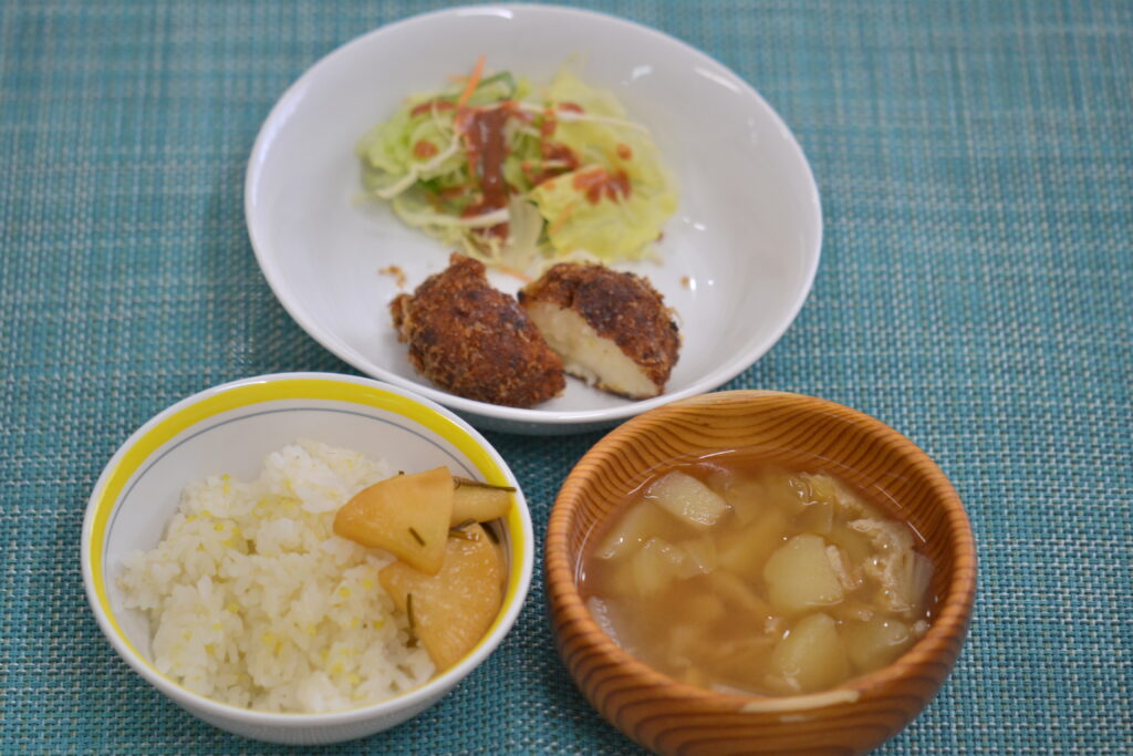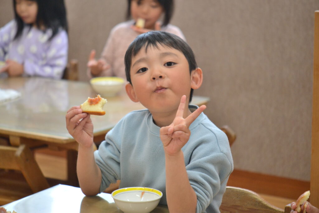 今日の昼食は、年長S君のリクエストで『豆乳クリームコロッケでした』!!豆乳・米粉・自家製塩麴で作ったホワイトソースを成形して揚げています。衣には溶き米粉と、パン粉の代わりにかつお節をつけています。クリーミーでうま味たっぷりの美味しいコロッケです😋💗3時のおやつは『甘酒ブレッド』でした。自家製甘酒を使用しています。てんさい糖などは使用せず、塩と甘酒の優しい甘さのみで仕上げます。また、甘酒を入れることでふっくらとなり、より美味しさを感じます。お好みで、自家製りんごジャムを添えて食べました🍎✨